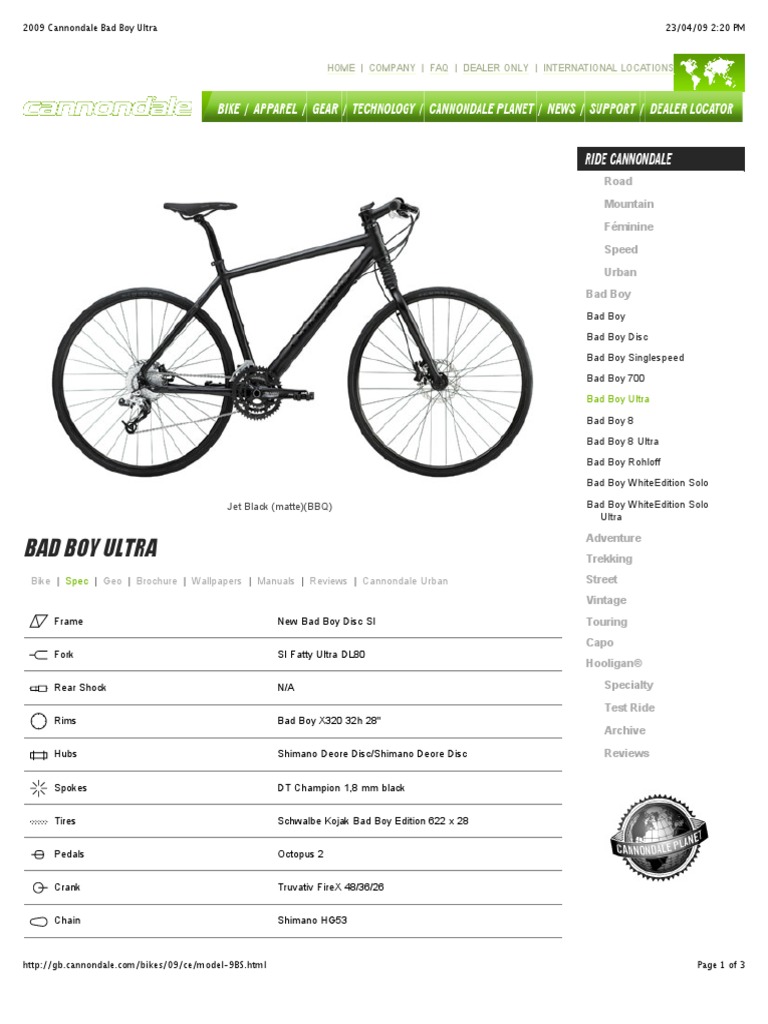 Similar cannondale bikes from other years. Sun ds 2 bad boy 32 hole. It was released in 2007 and costs 1 299 brand new. The bad boy ultra has 9 speeds and has a shimano sram derailleur.