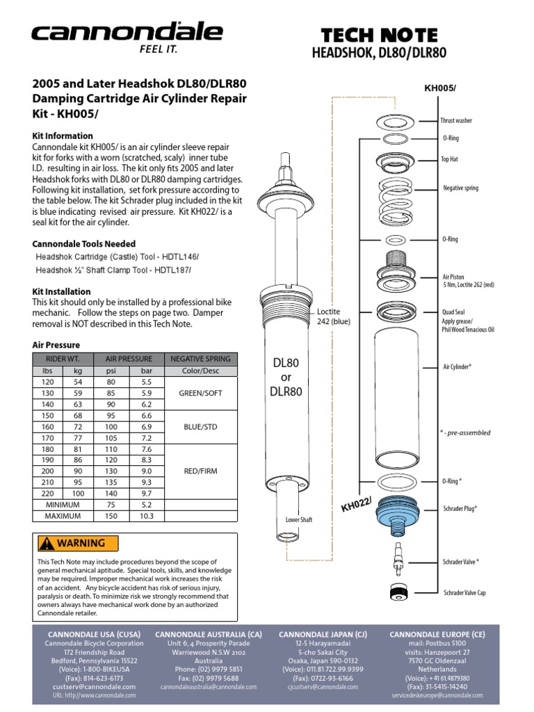 Authorized cannondale dealer or authorized headshok service center. Cannondale lefty owners manual author. Regards j0st what are you trying to do. One from the cannondale website tech center or call our customer service line at 1 800 bike usa in the u s.